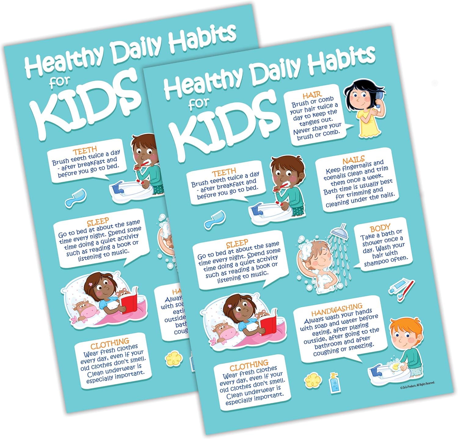 Amazon Com 2 Pack Kids 7 Healthy Daily Habits Poster Hygiene Posters For Kids Kids Health Posters For School Health Posters For School Nurse Office 12 X 18 In Laminated Everything Else