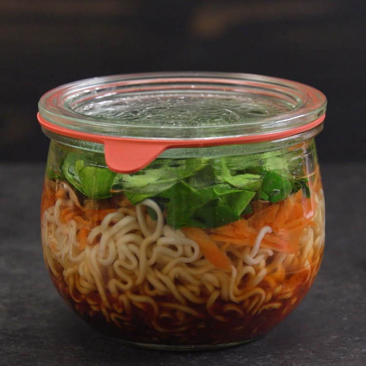 Fill a mason jar with soy sauce sesame oil pepper mushrooms carrots spinach noodles and green onions. Adjust seasonings to taste. Choosing instant noodles that are lower in sodium or made from whole grains can give your instant noodles a healthy upgrade.